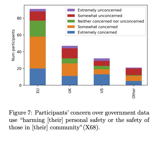 The qualitative responses help us understand why this is the case: participants are very uncomfortable with their data being used for purposes other than those for which the data were initially collected. When asked who they would trust the most to run a new app that would monitor their location, respondents showed strong preference for a University Research Group because “(universities) have little to gain by having my data other than to use it for its intended reasons” (page 13).