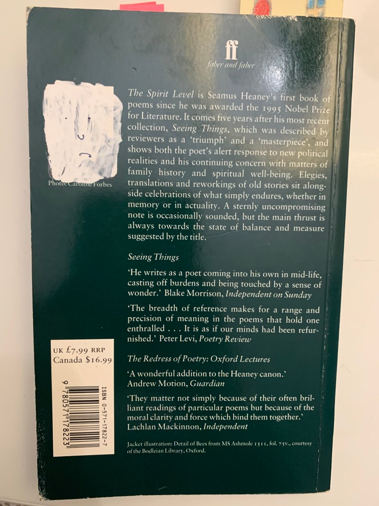 3rd book of 2021 – “The Spirit Level” by Seamus Heaney.