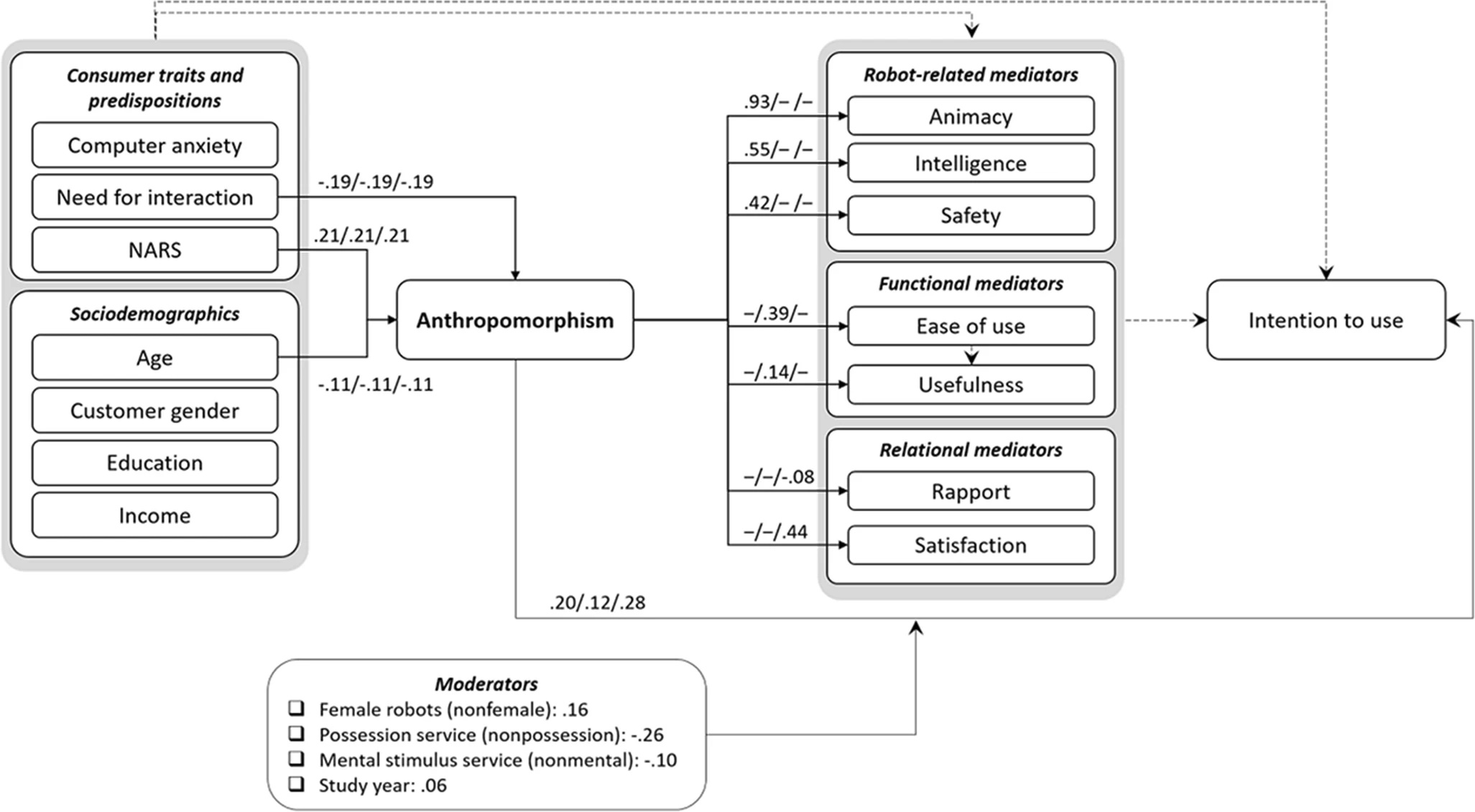 Perceived anthropomorphism was strongly correlated to intention to use the technology. The effect was particularly strong: