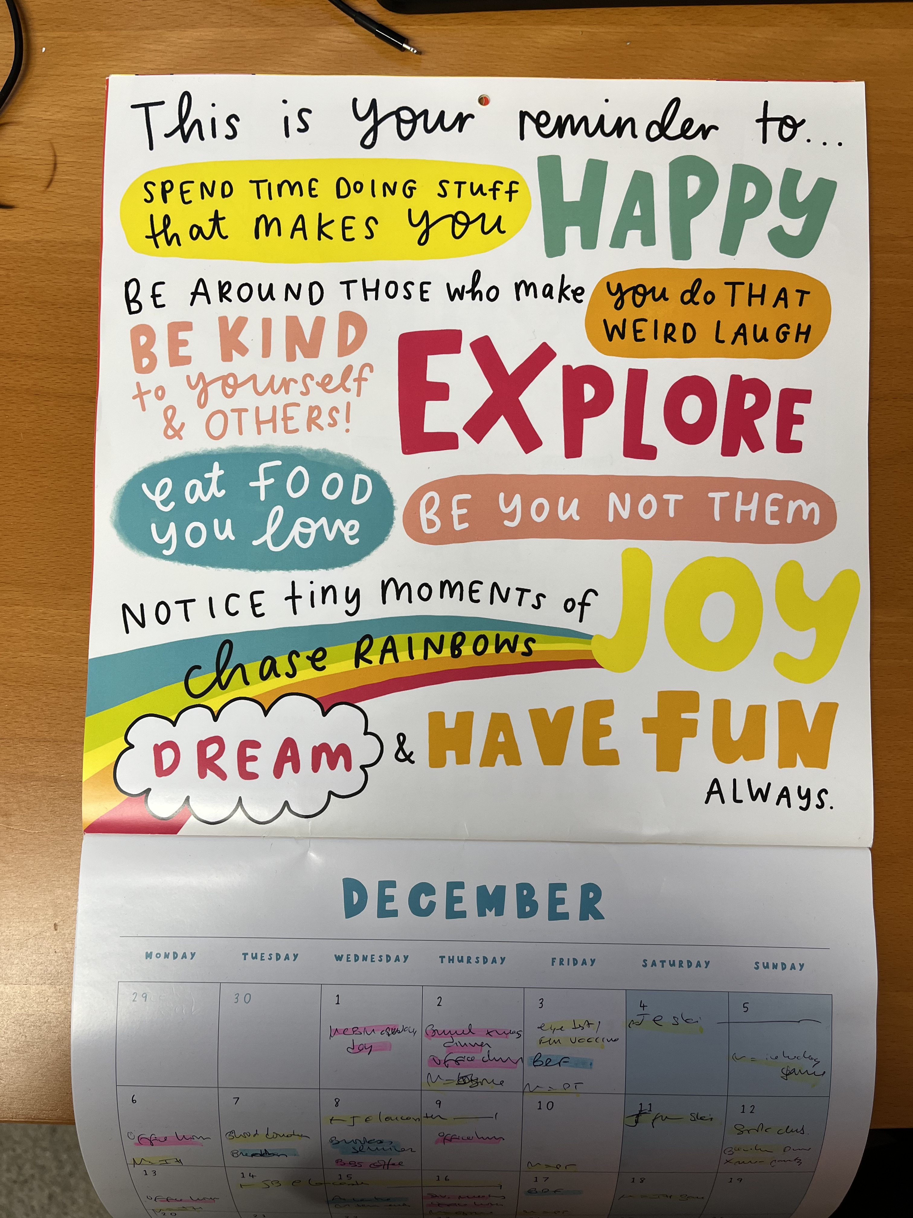 Despite knowing this, and despite planning for a paired down December, I still managed to schedule more than I could handle. Cue anxiety and frustration when, inevitably, the wheels started spinning, and I couldn’t tick off all the items on my to do list, like those 15 writing sessions I had planned for. I think I need to write a note for my future self, reminding me to half my to do list, and then half it again!