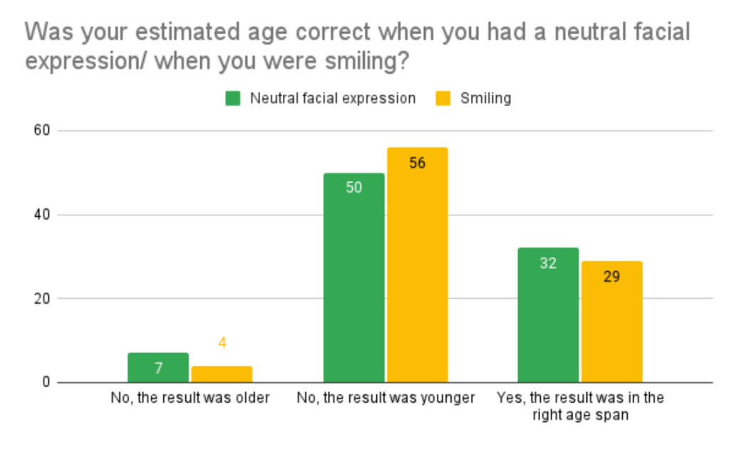 The study found that the system accurately guessed the age span of the customer on around 33-36% of the occasions (29/89 and 32/89). Moreover, the system would underestimate the age in around 56-63% of the times, and overestimate it in the remaining 4-8%.