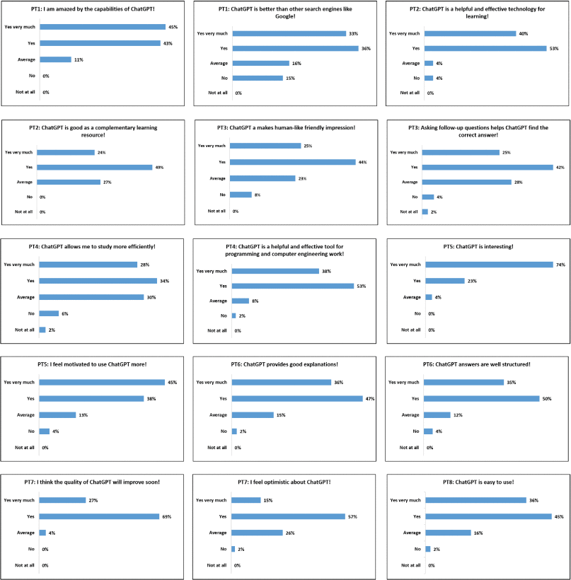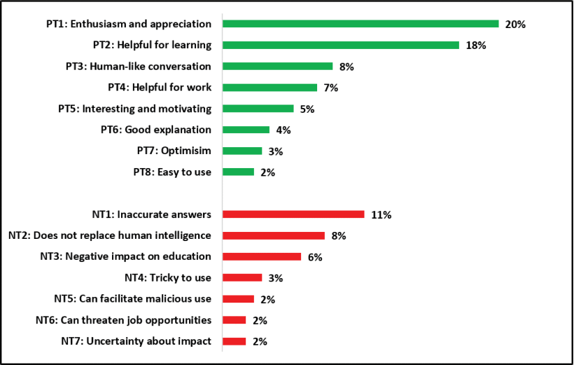 When asked “What do you think of ChatGPT? Think deeply and write down whatever comes into your mind!” (after completing a learning activity on ChatGPT), they mentioned the following positive and negative experiences: