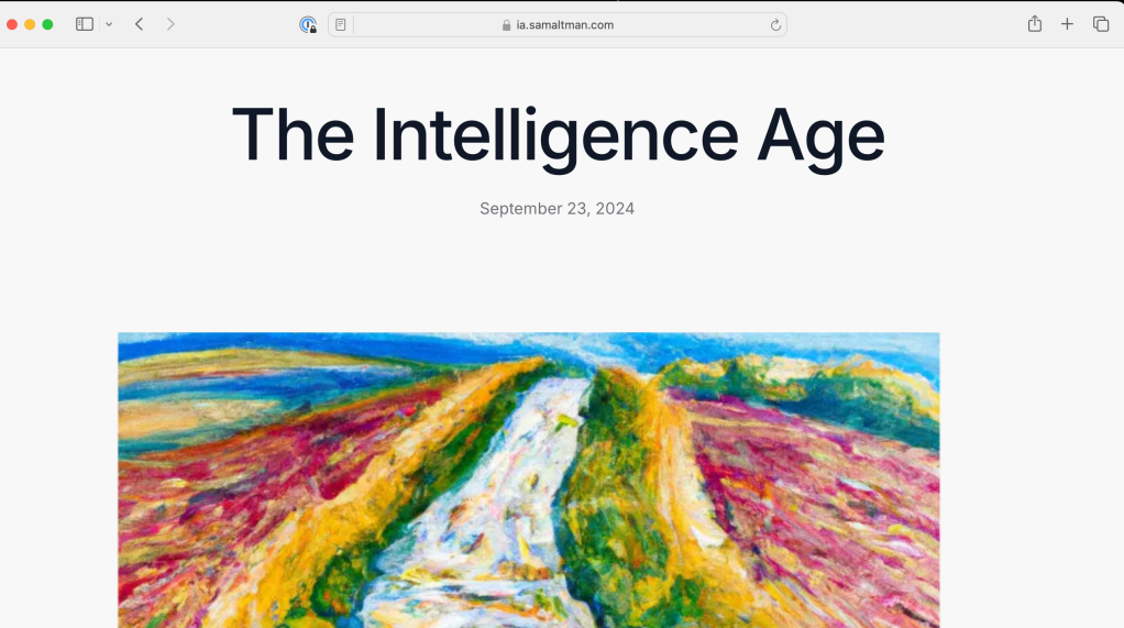 Last week, Sam Altman, the CEO of Open AI, wrote a blog post entitled “The Intelligence Age”.