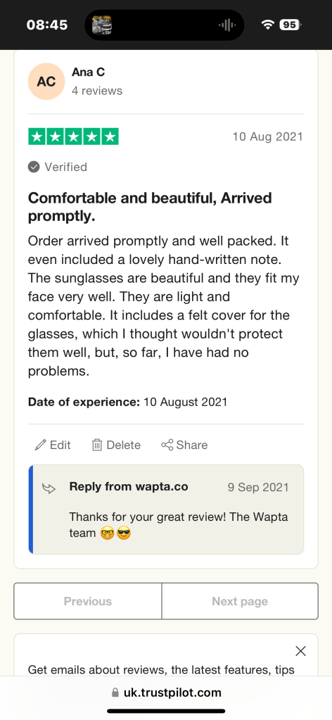 Back in the summer of 2021, I bought some sunglasses online. They arrived in a box with a handwritten note. I even mentioned it in the review that I wrote at the time: