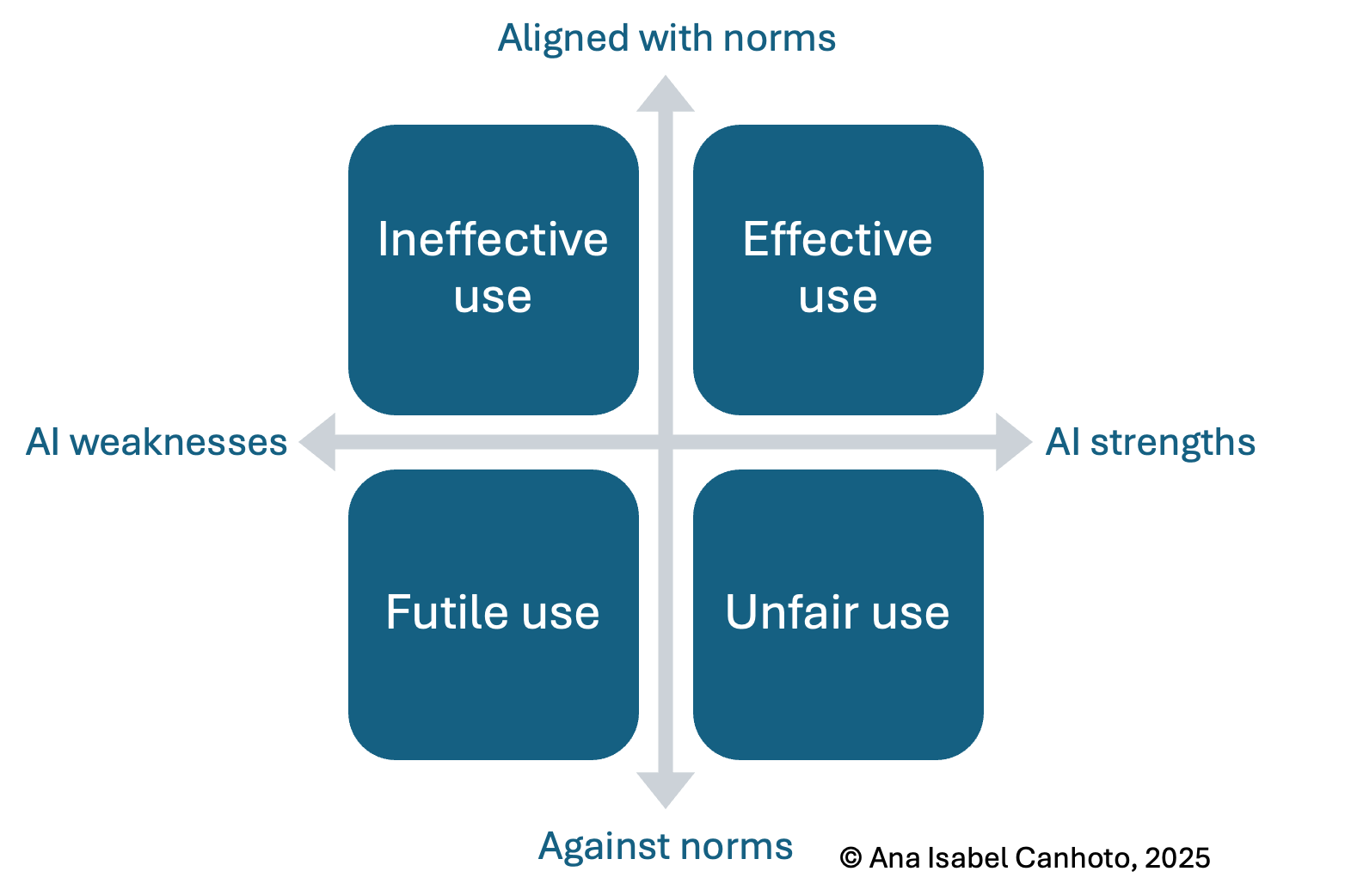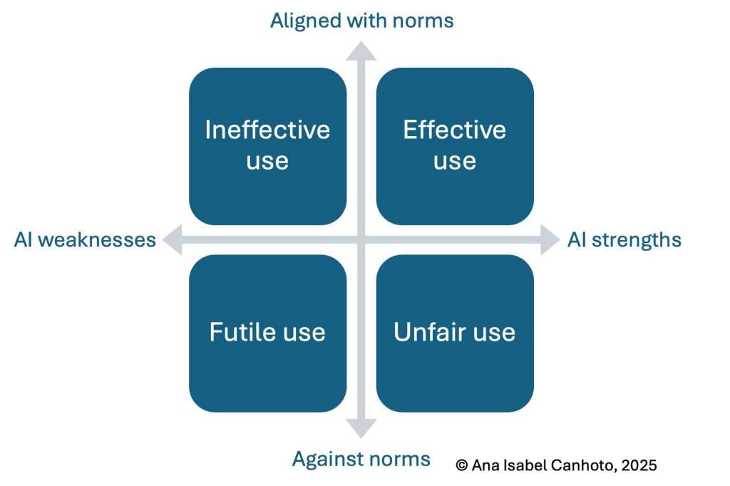 - Exercise to identify where use of generative AI in research may be effective vs. ineffective vs. unfair vs. futile (some examples here)