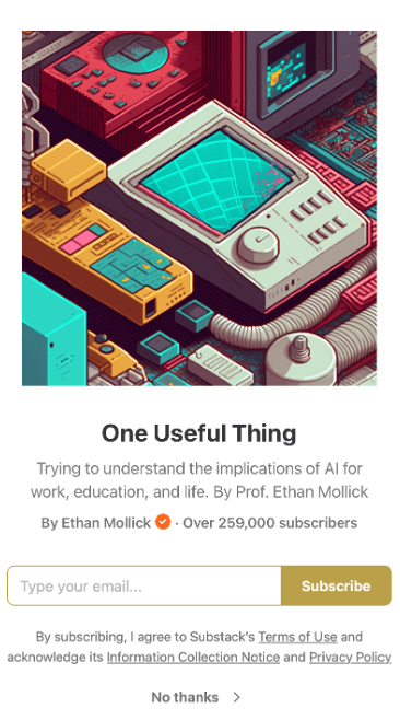 Ethan Mollick is a professor of Management at Wharton, with expertise in entrepreneurship and innovation. He writes regularly about developments in GenAI applications in teaching and research, and impact on innovation. He posts regularly on LinkedIn, writes on his blog, co-authored the book Co-Intelligence, developed videos… you get the idea. He is very generous with his time and knowledge and and, most importantly, makes complex ideas very simple.