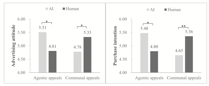 Though, again, that effect was observed only for the agentic appeals. For the communal ones, the AI + humans adverts performed less well than either of the other options. Again, no explanation for why this is the case, which is a bit frustrating (and something that a bit of qualitative research would have solved).