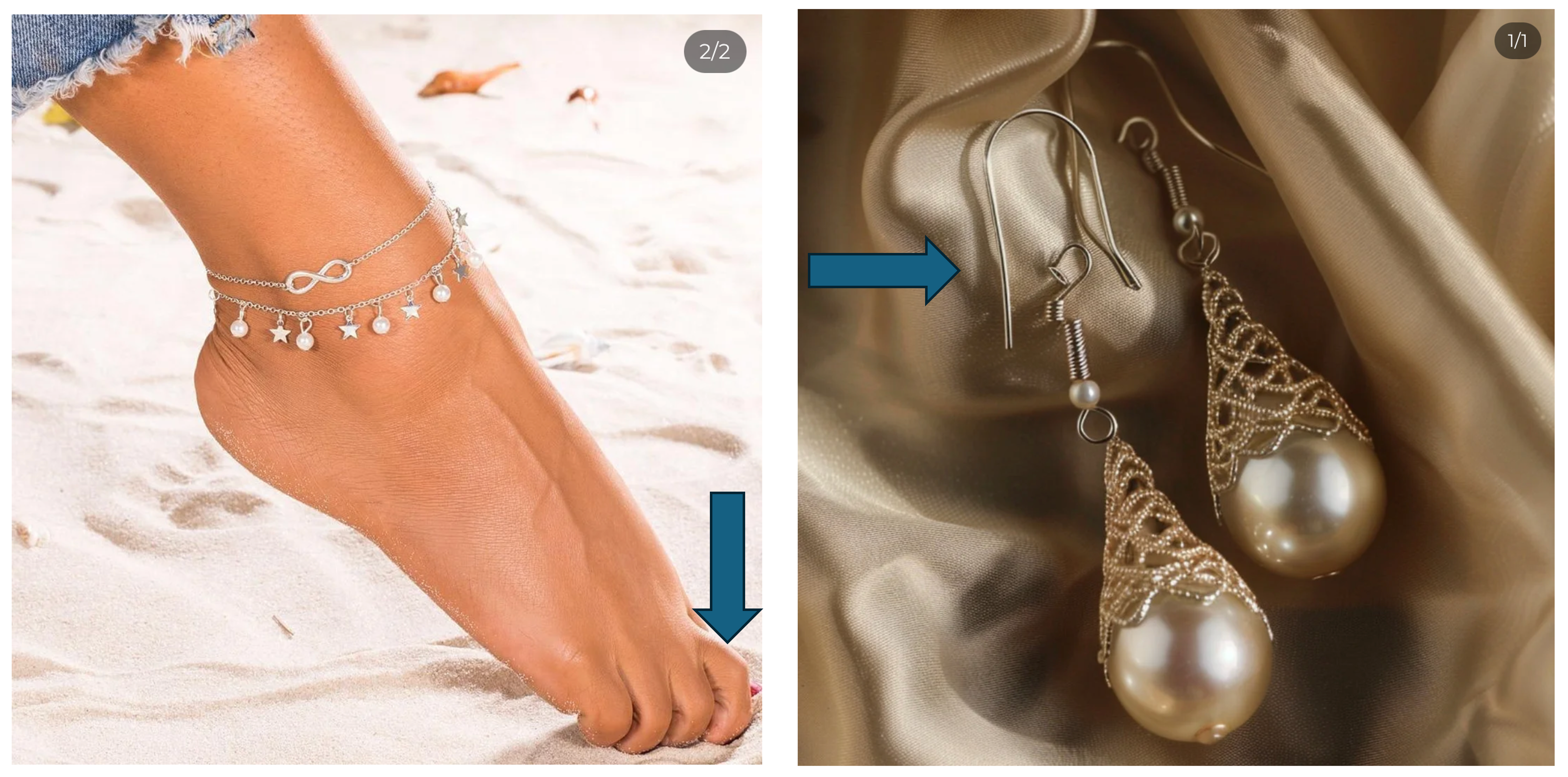 The second sign that an image is AI-generated is the opposite: obvious anatomic or functional mistakes. For instance, one of the images on the scam website has some anatomically incorrect toes, while another one shows earrings that would be impossible to wear.